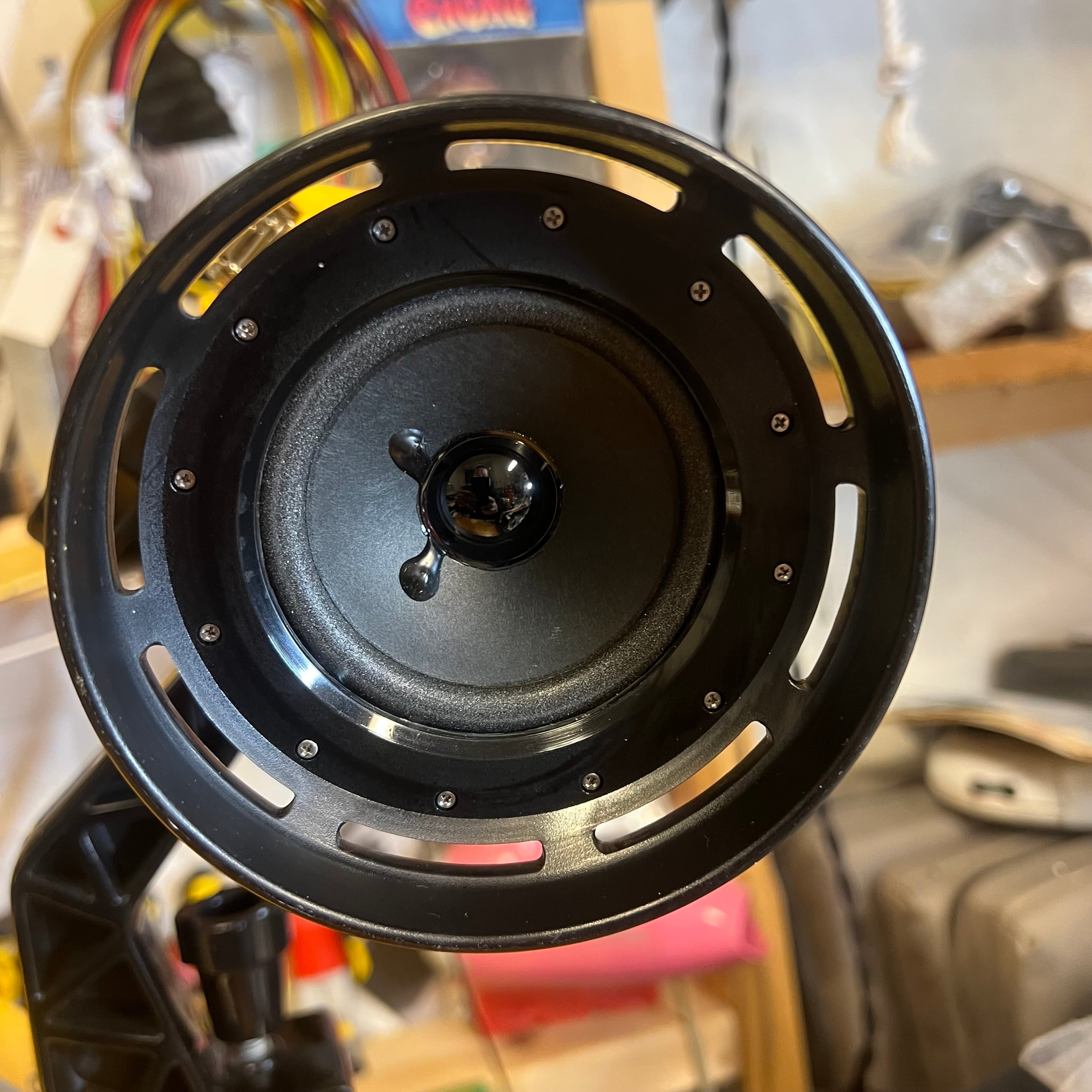 照明レンズのところとカメラレンズのところにスピーカーをレイアウトしてあります。