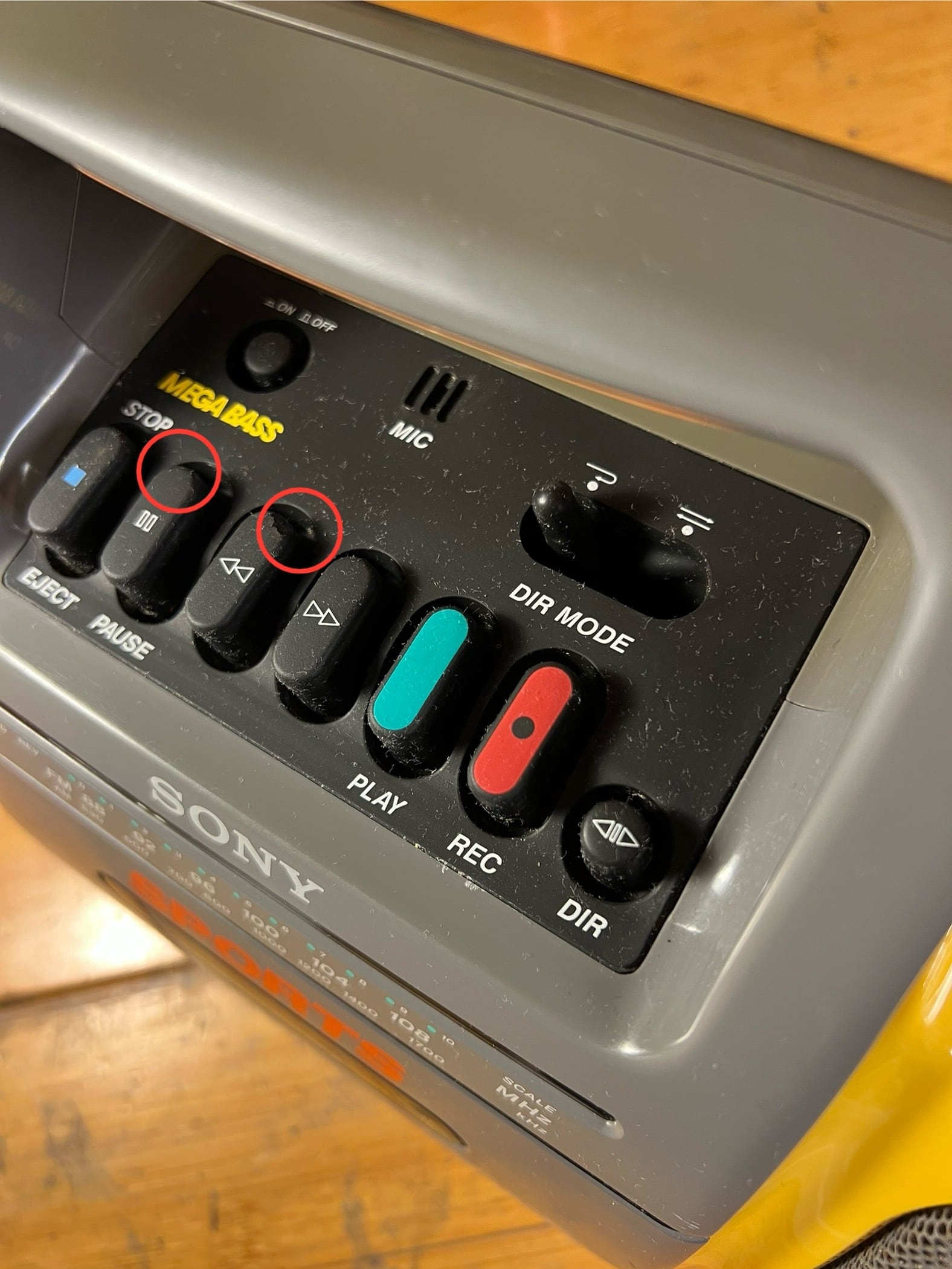 再生、録音、早送り、巻き戻し、オートリバース、DIR、ボリューム、トーン、MegaBass、マイク録音、しっかり機能します。